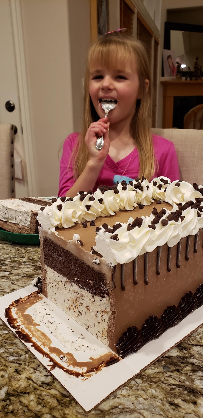 But seriously, being 40 isn't all bad. My friends took me to lunch and gave me racy gifts. I got a pedicure. Mykey bought me a watch and wireless earbuds for my runs. Kitty made me a card and announced to her teacher at school that I'm 40 now. I used cash from my parents to get new jeans. I got an Amazon gift card from my mother-in-law. My Relief Society counselors and secretary bought me an ice cream cake. I'll turn 40 everyday if I keep getting ice cream cakes.